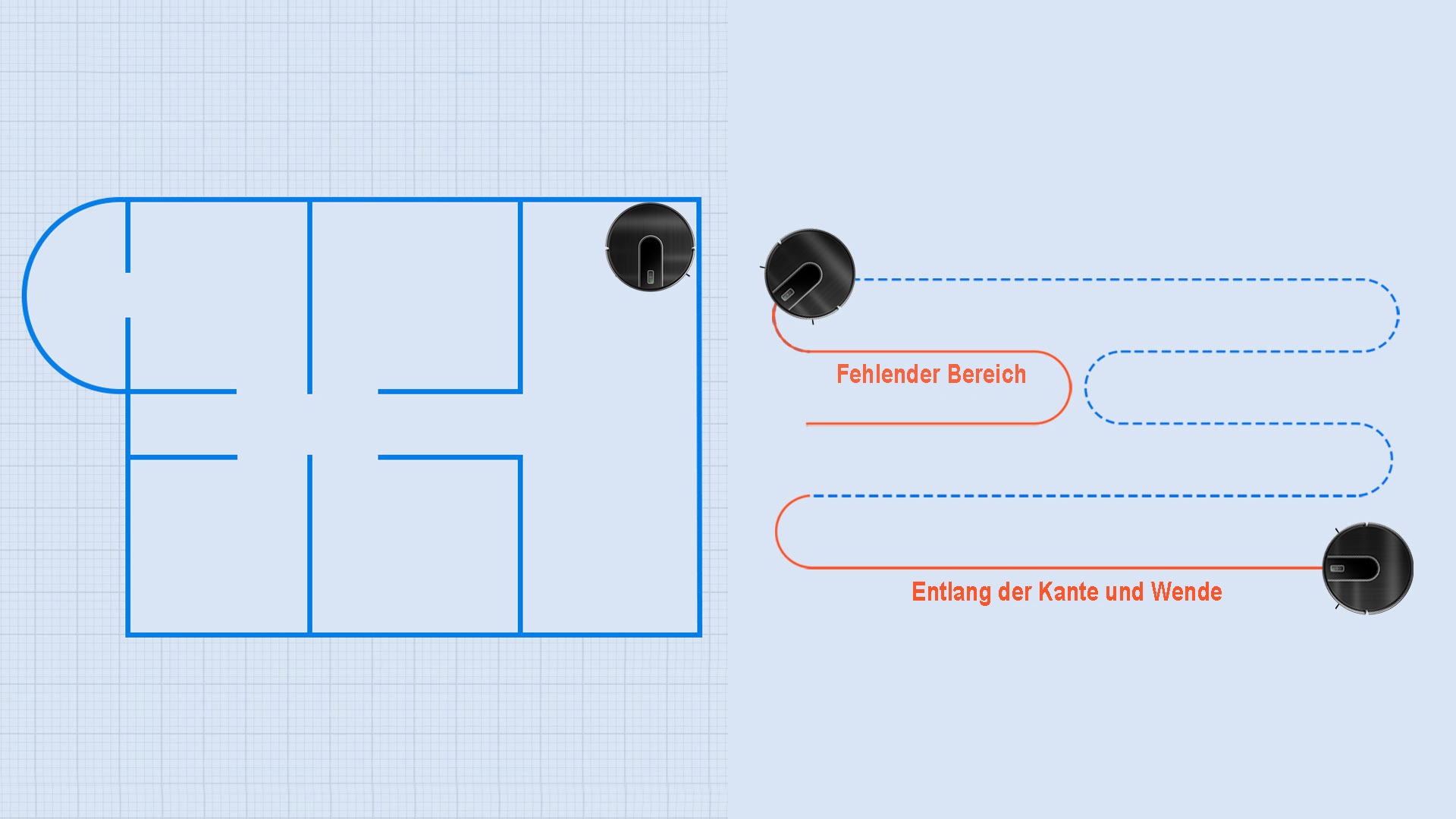 Nach der Reinigung kehrt es zu seinem ursprünglichen Punkt (Ladepunkt) zurück.